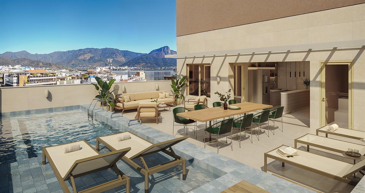 - Rooftop com piscina e vista panorâmica da Zona Sul