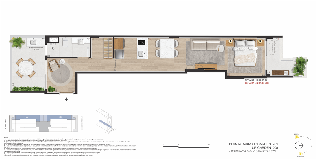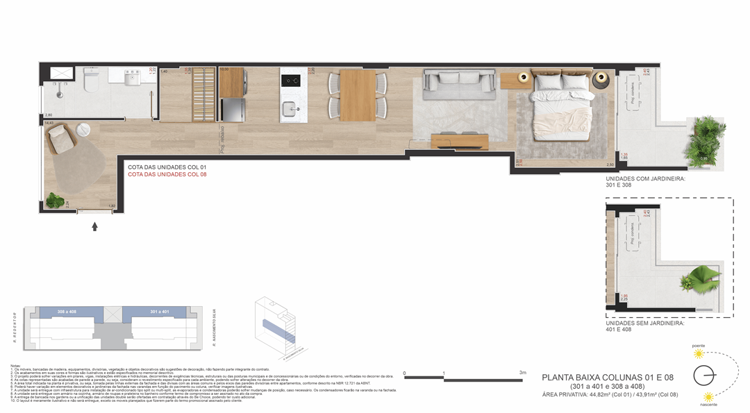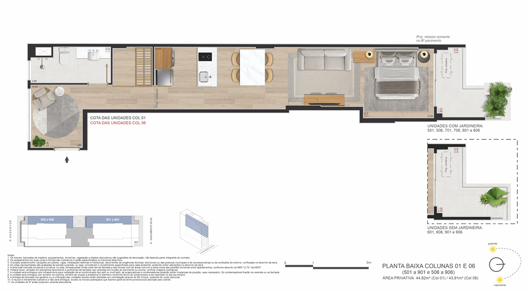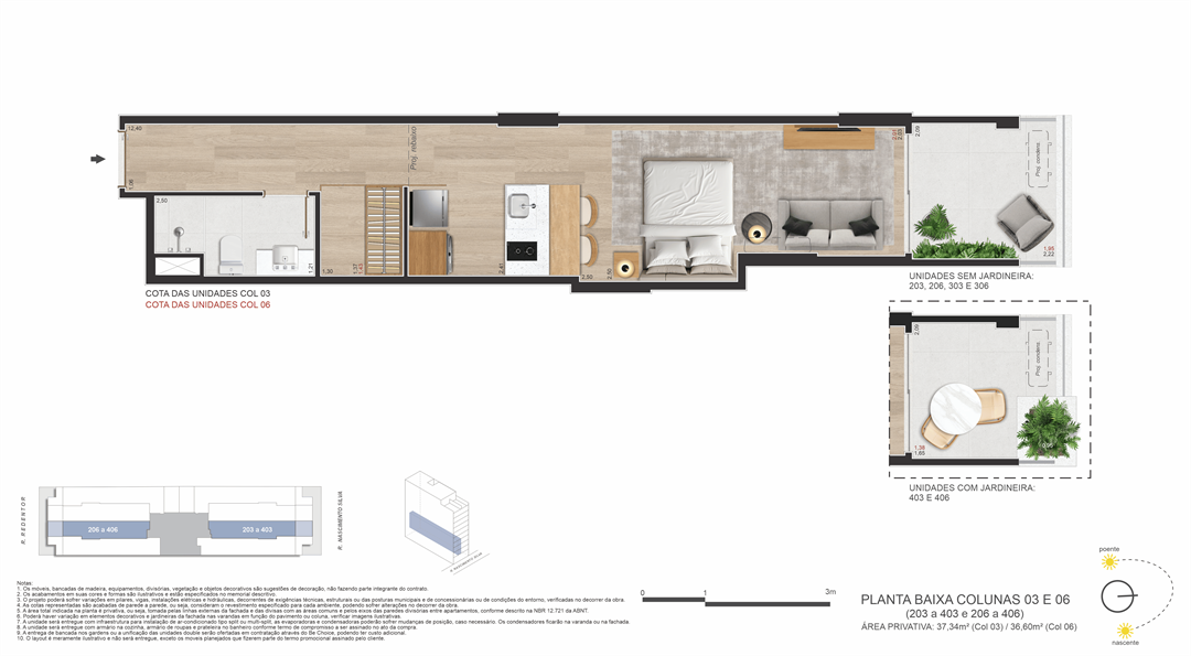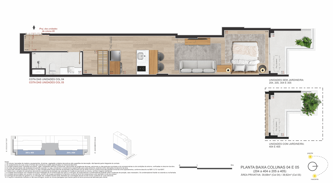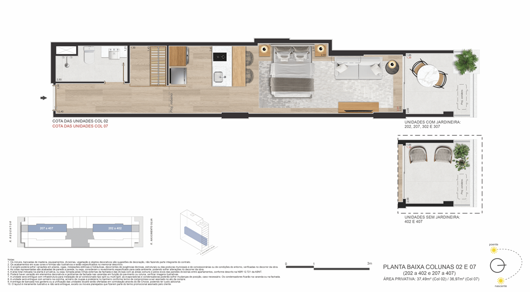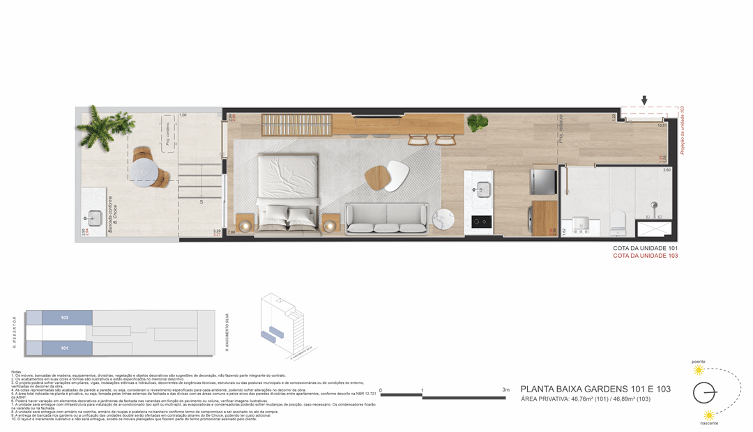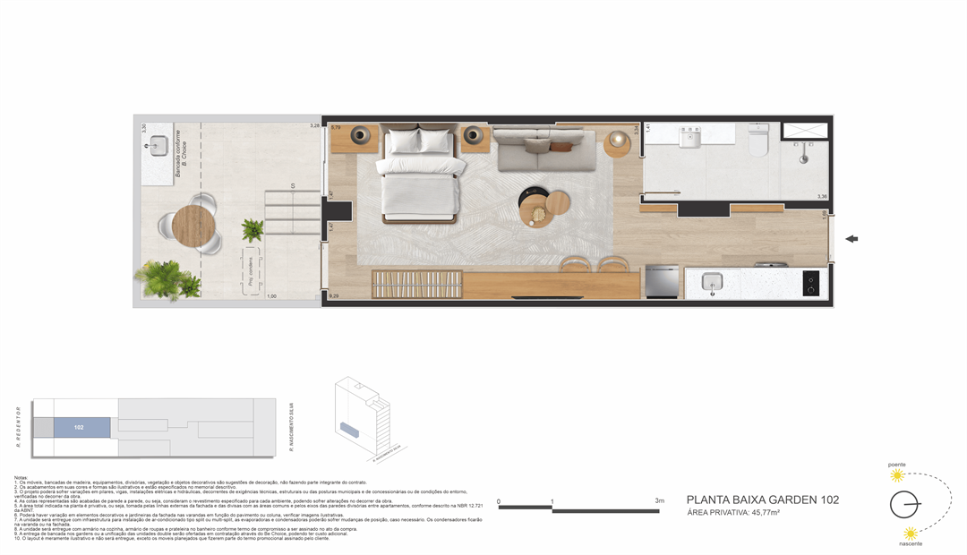 Um projeto de Opportunity e Brix, que ocupa um terreno com duas testadas (passante) — uma raridade no bairro de Ipanema — que liga a Rua Nascimento Silva, 387 (entrada principal) à Rua Redentor (acesso secundário). Isso garante mais privacidade, ventilação cruzada, plantas inteligentes e acessibilidade estratégica.