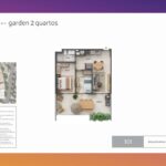 - Studios Gardens e Tipo: de 41,11 a 47,83 m² e de 34,46 à 44,08 m², perfeitos para solteiros, casais sem filhos ou como investimento para aluguel, os studios combinam funcionalidade e conforto em espaços bem planejados;