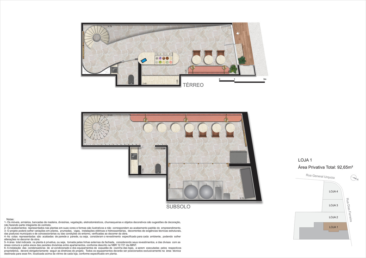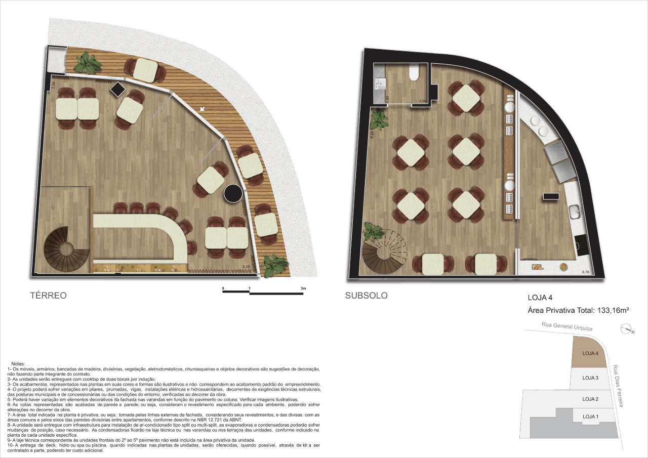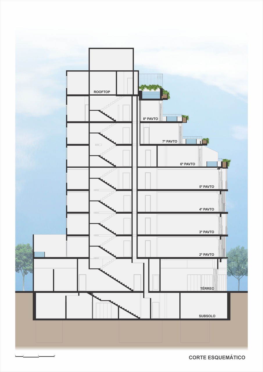 Além disso, o térreo abriga 4 lojas – No embasamento, com vitrine em viro, fator que reforça a valorização, o movimento da rua e a conveniência para moradores e visitantes.