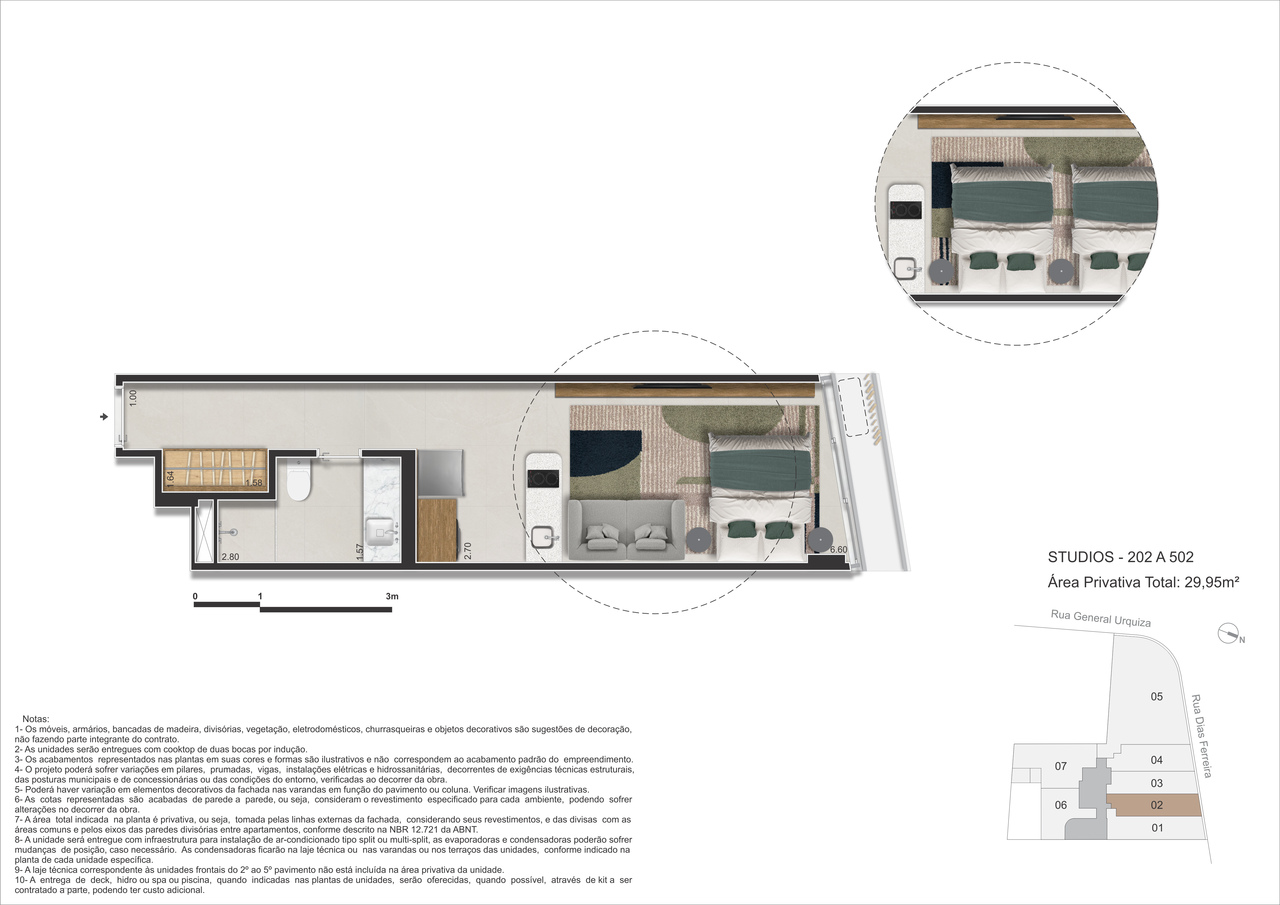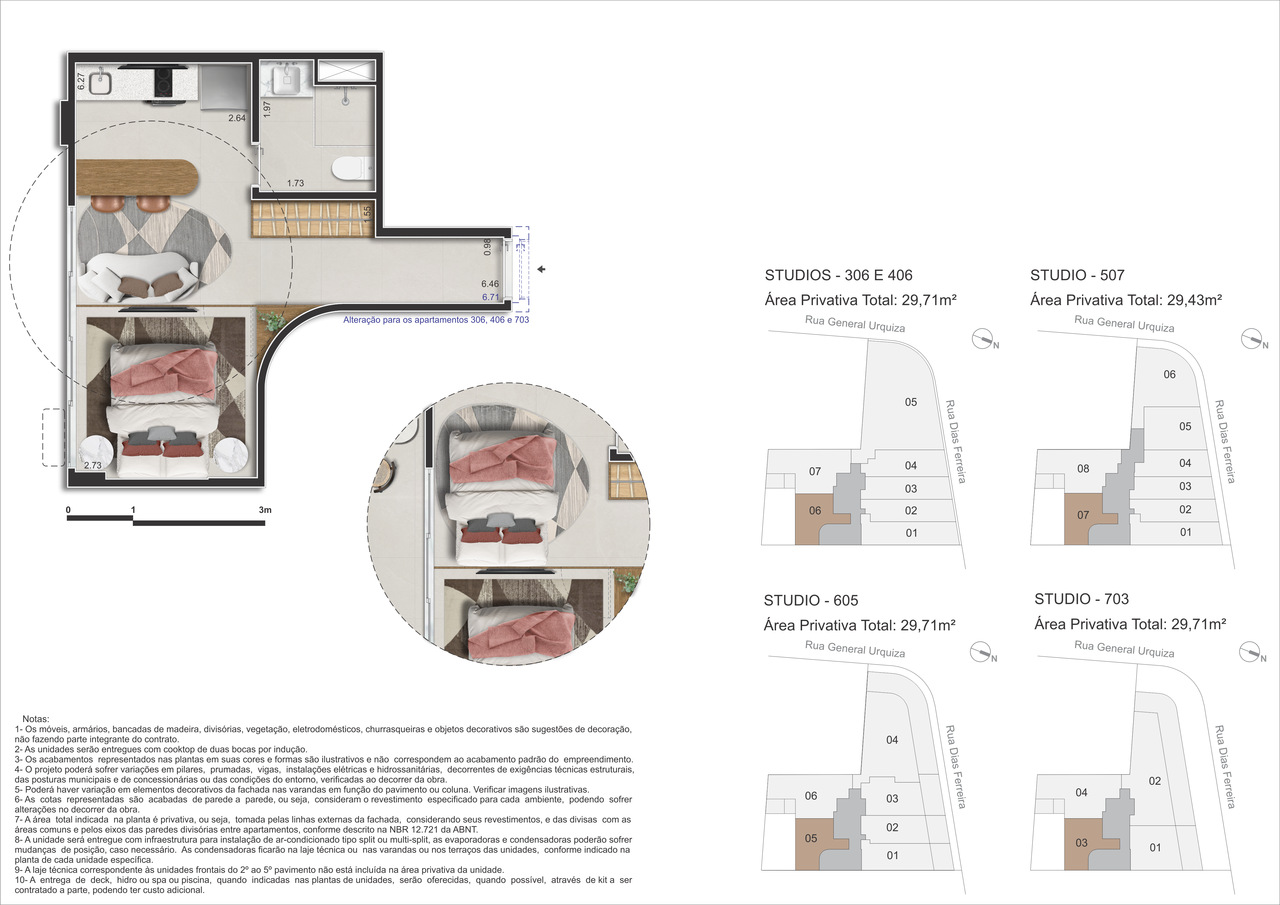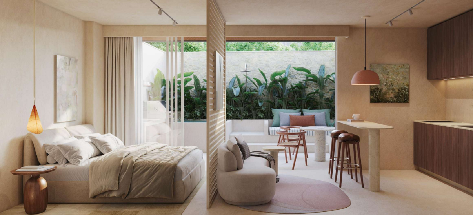 - Studios – 29 m² a 34 m² – Praticidade e funcionalidade com conforto