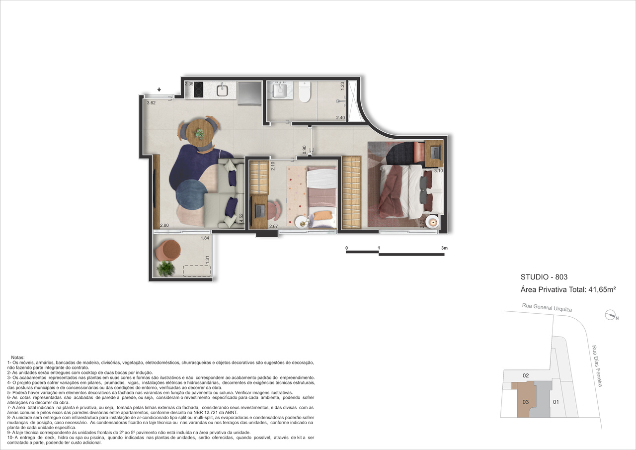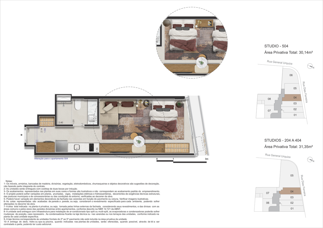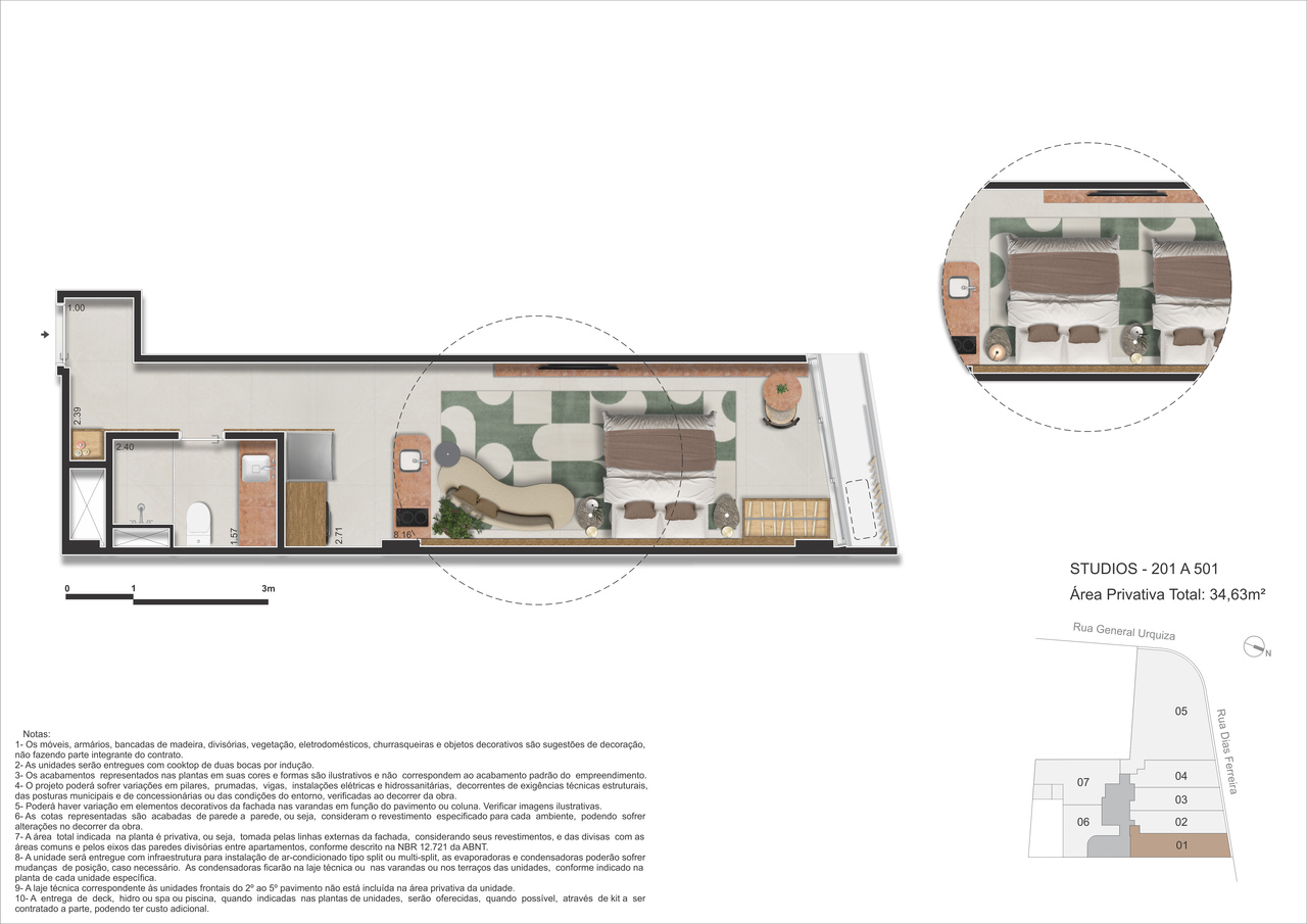 - Studios – 29 m² a 34 m² – Praticidade e funcionalidade com conforto