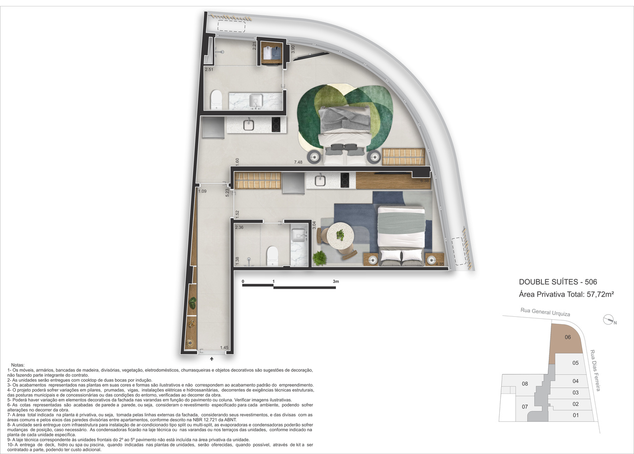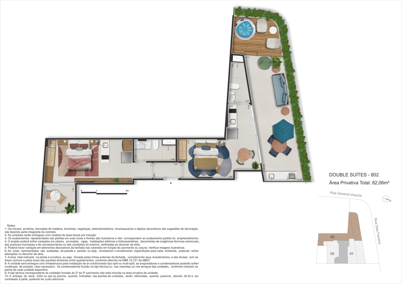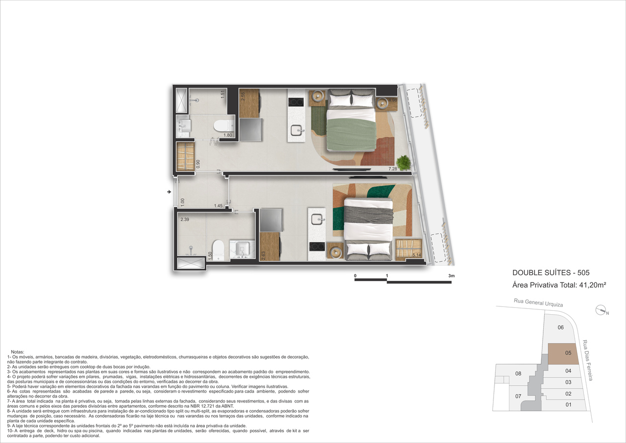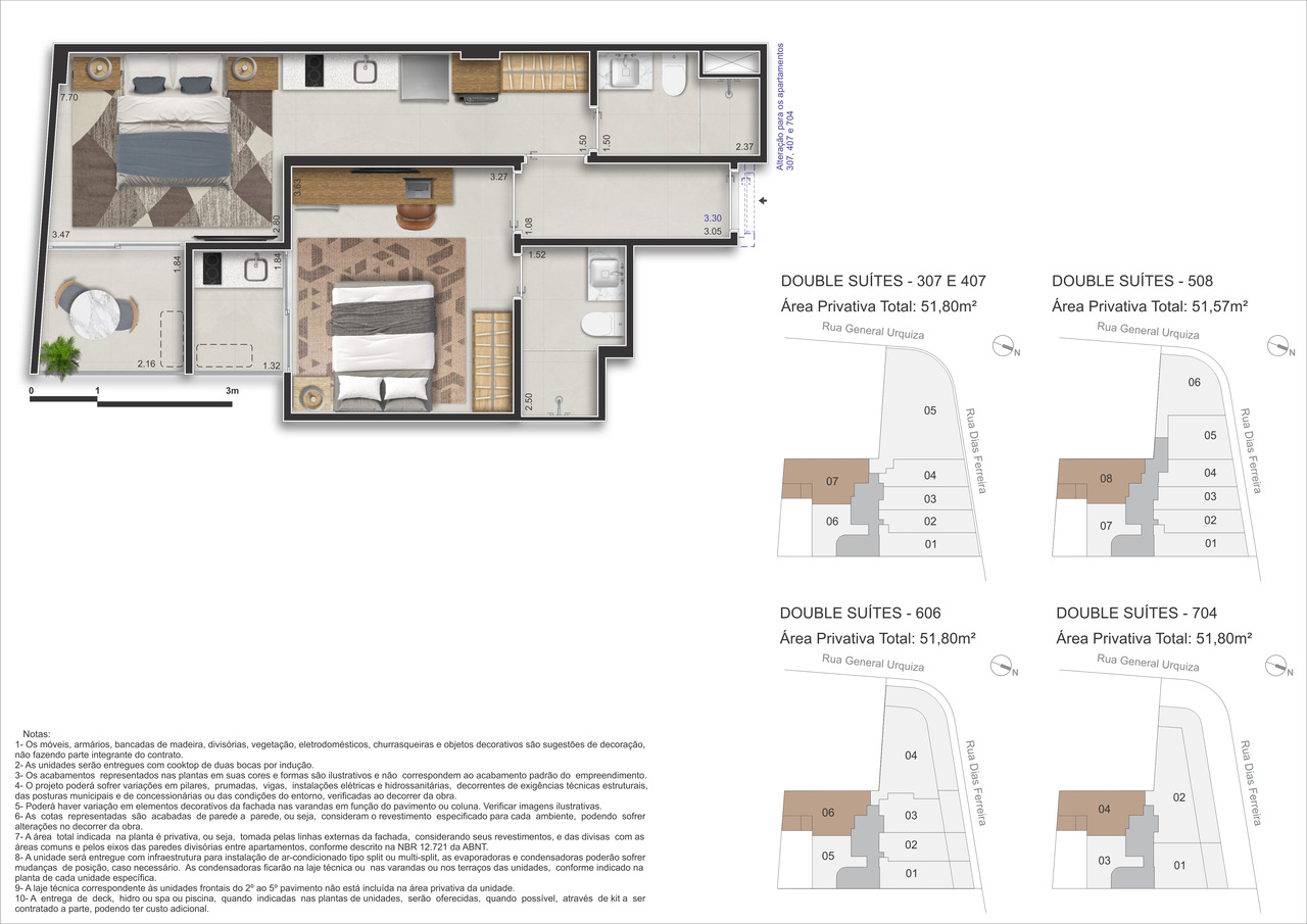 - Double Suítes – 41m² a 51m² – Mais espaço com privacidade, ou para a duplicidade com fins locatícios