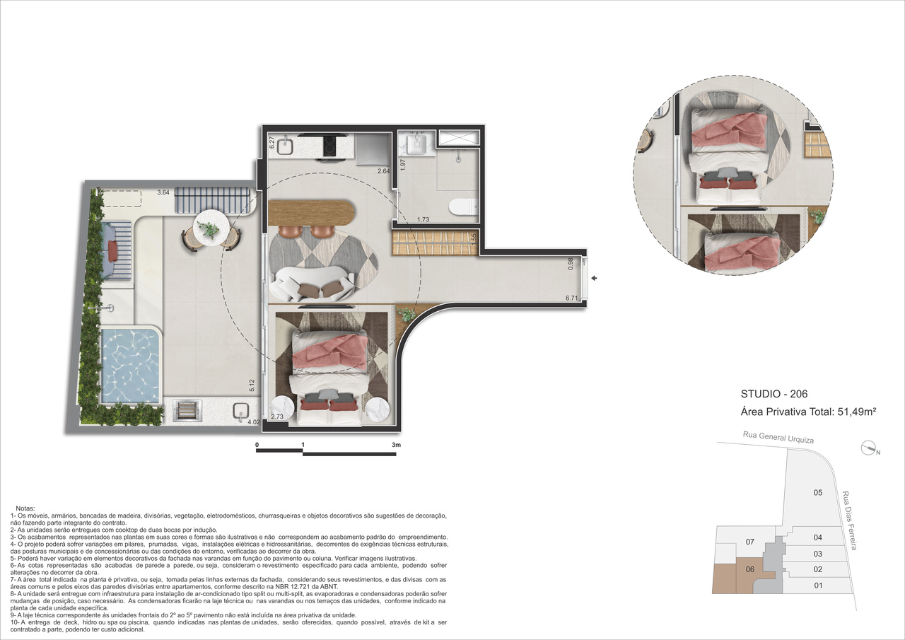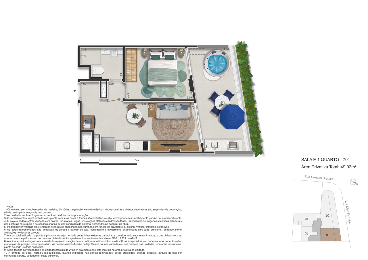 - Studio Garden – 51m² – Funcionalidade com conforto e espaço ao ar livre privativo, como um quintal