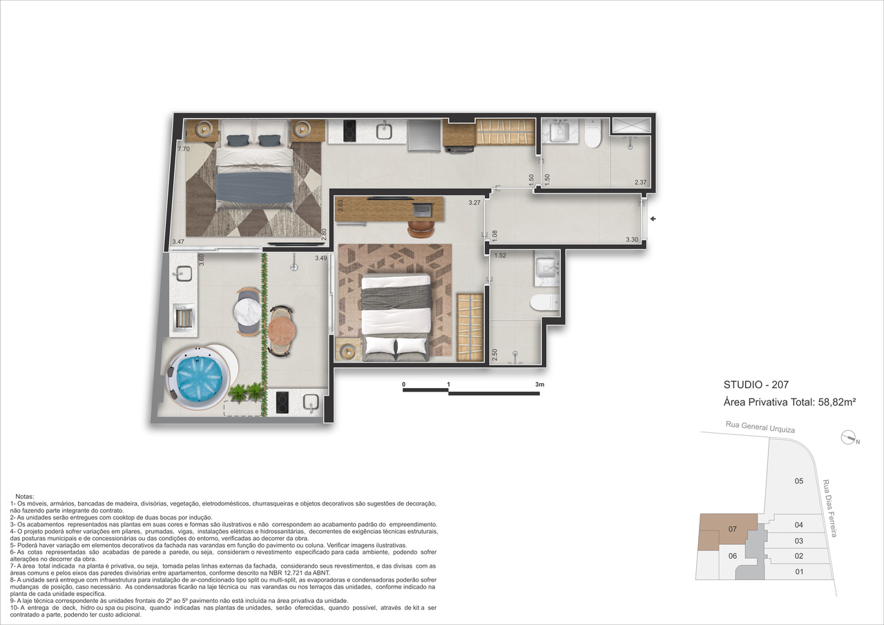 - Double Garden – 58m² – Além de mais espaço com privacidade e/ou ampliar número de locação, espaço ao ar livre privativo