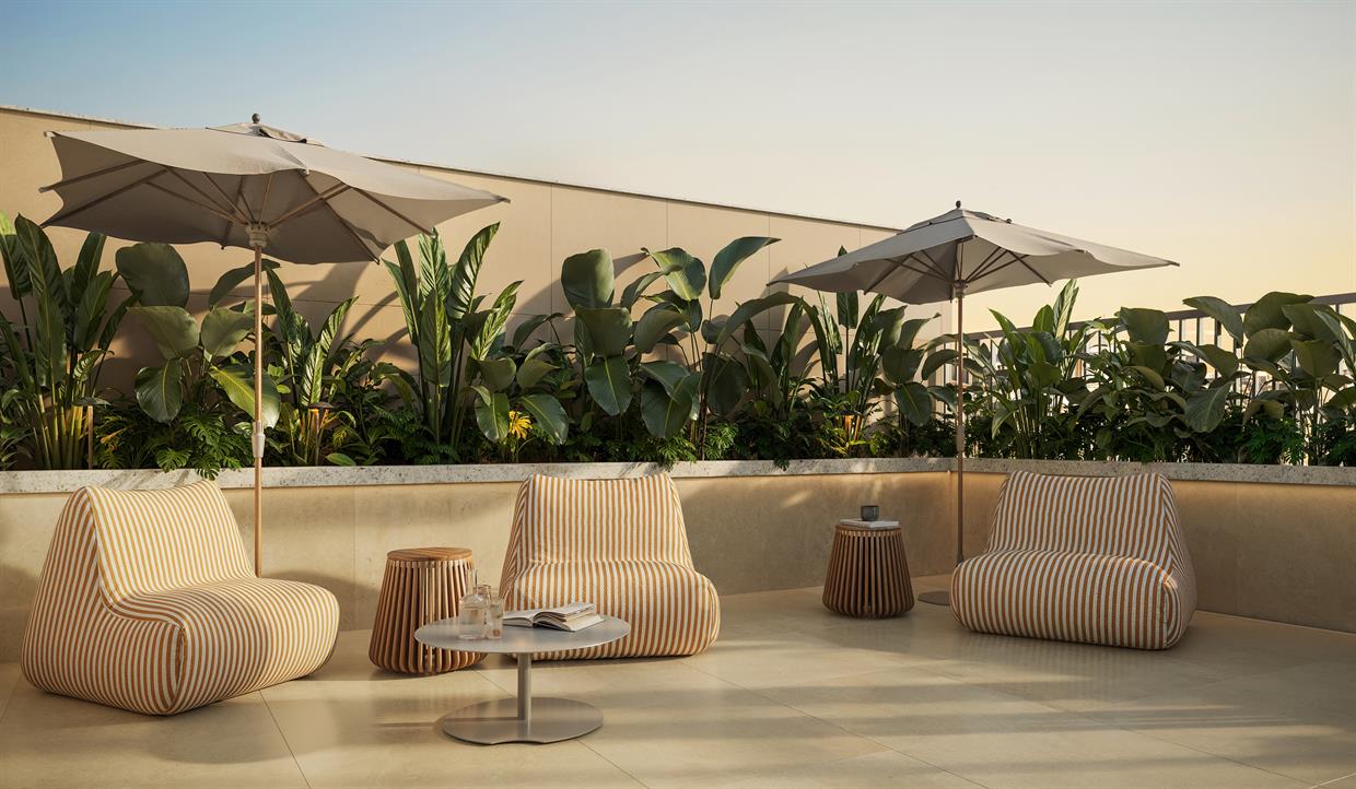 No 13º pavimento um refúgio para descansar de tantas atividades externas. O rooftop foi criado como um espaço prazeroso de bem-estar, para relaxar e contemplar a paisagem com uma vista privilegiada: