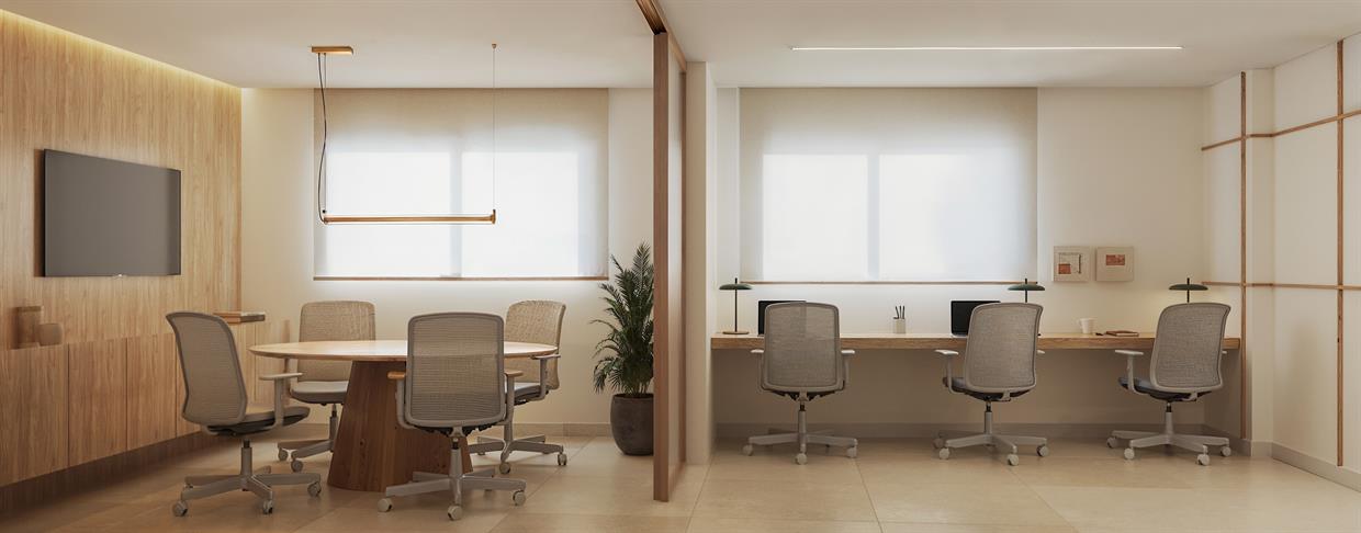O conforto no condomínio: o benefício de um espaço adequado e confortável com infraestrutura necessária para os que trabalham remotamente, viajantes a negócios, ou mesmo um morador que necessite de ambiente mais profissional e menos distrativo que seu apartamento